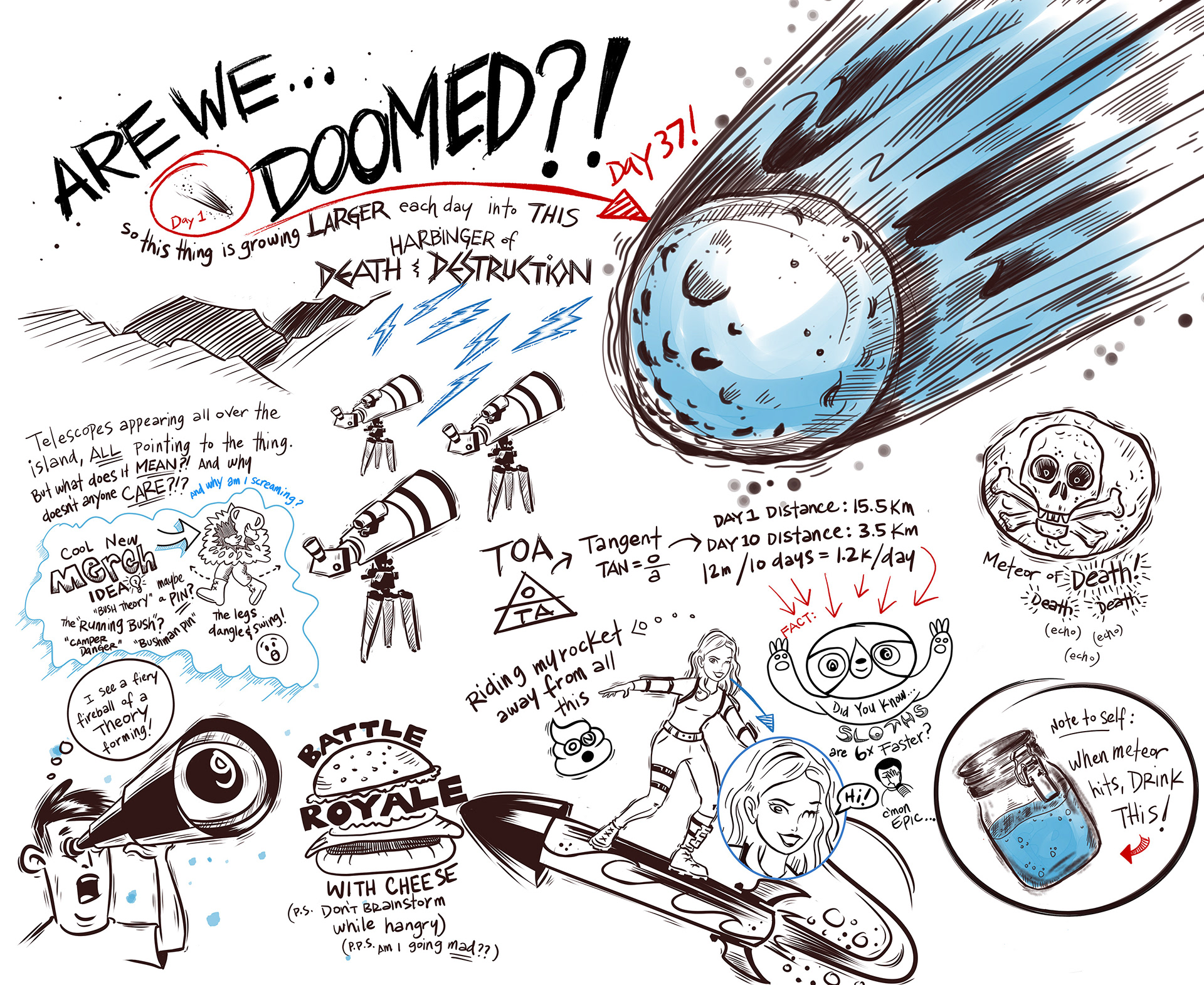 When we set out to create a Moleskin-like journal for Game Theory's Back-to-School campaign, I wanted to fill the first few pages with sketches as a fist-bump to some of MatPat's popular GT episodes. The Lost Pages campaign born.